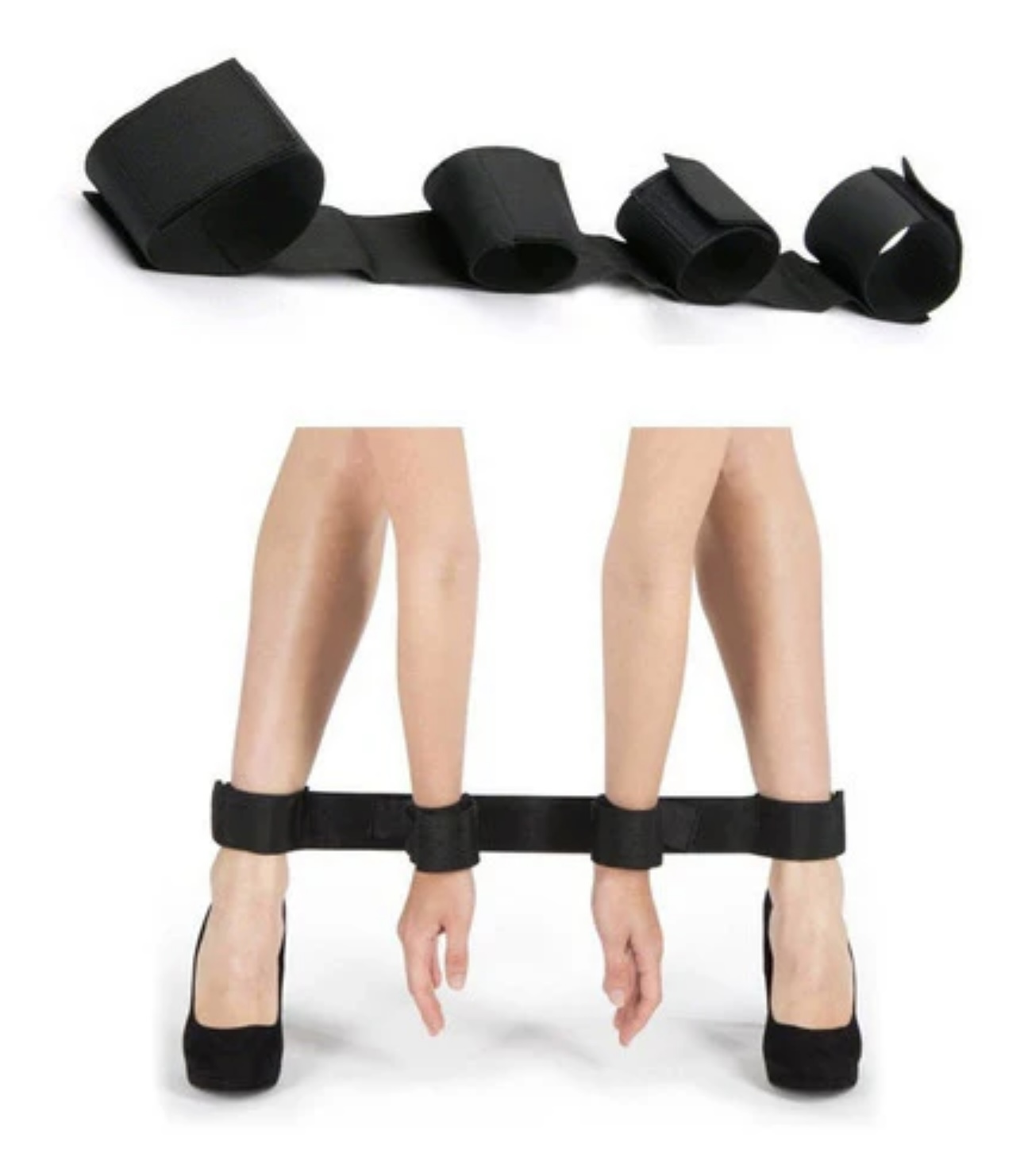 Experimenta la verdadera entrega con este sujetador de muñecas y tobillos, un accesorio imprescindible para los amantes del BDSM que buscan una inmovilización completa y excitante. Este sistema une las extremidades en una posición de sumisión total, ideal para juegos de dominación, castigo o placer intensificado